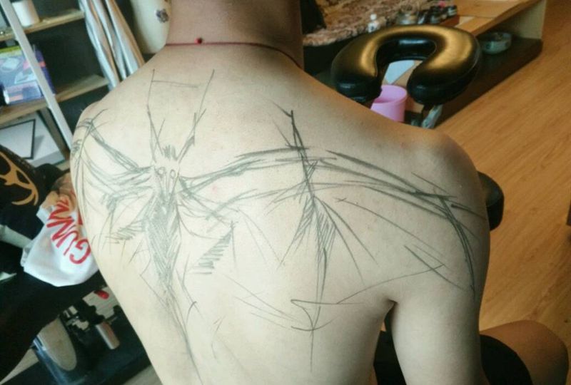 当前位置: 首页 >山东省潍坊市纹身店-澈古刺青纹身图案>线条感蝙蝠纹身图片