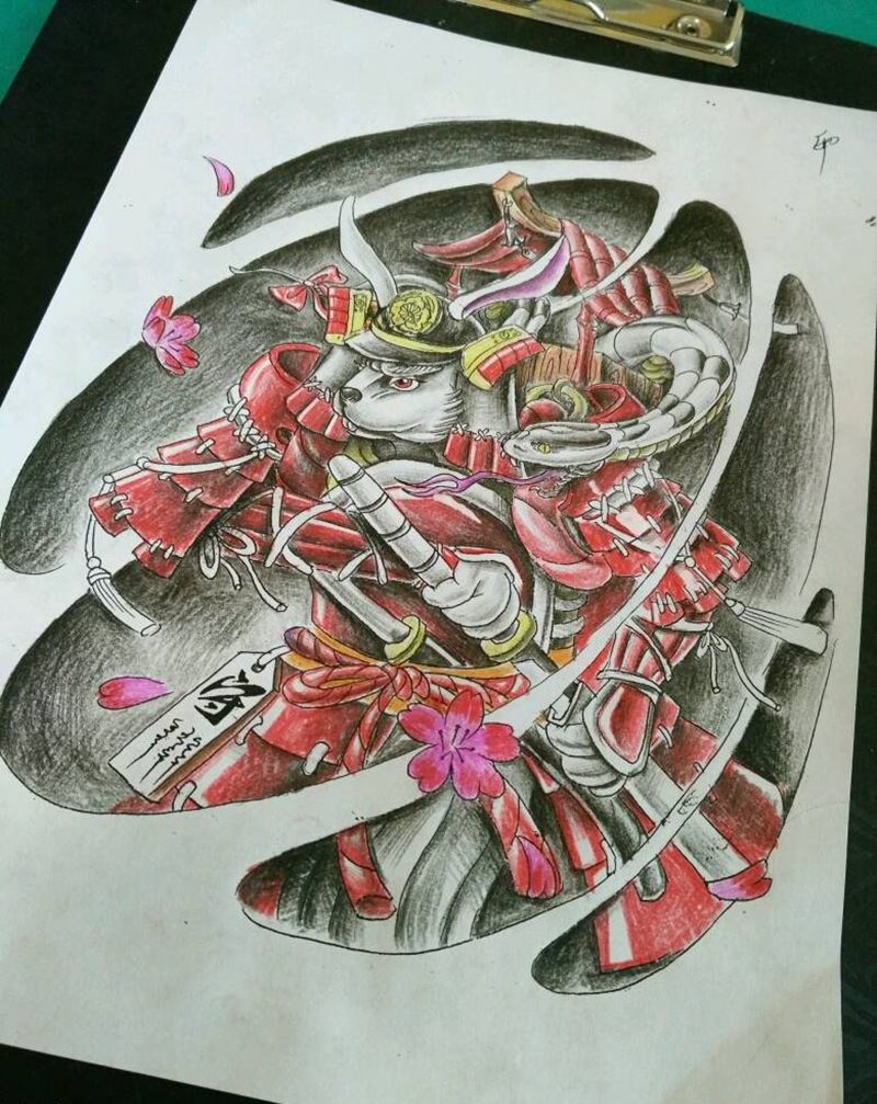 当前位置: 首页 >山东省潍坊市纹身店-澈古刺青纹身图案>原创设计武士兔子《守护》纹身图片