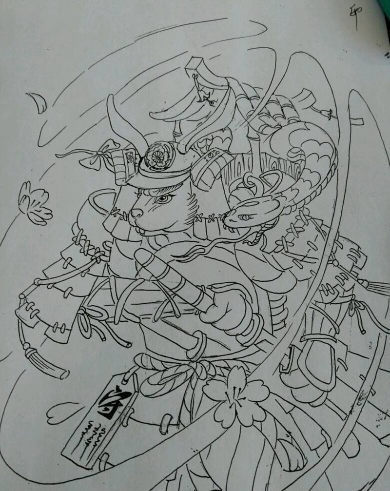 当前位置: 首页 >山东省潍坊市纹身店-澈古刺青纹身图案>原创设计武士兔子《守护》纹身图片
