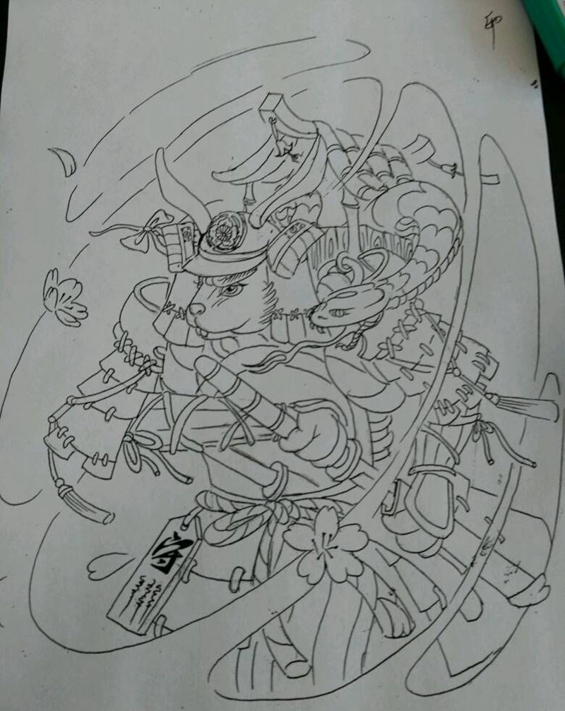 当前位置: 首页 >山东省潍坊市纹身店-澈古刺青纹身图案>原创设计武士兔子《守护》纹身图片