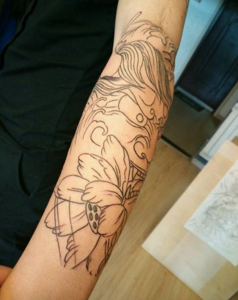 一组15张莲花纹身手