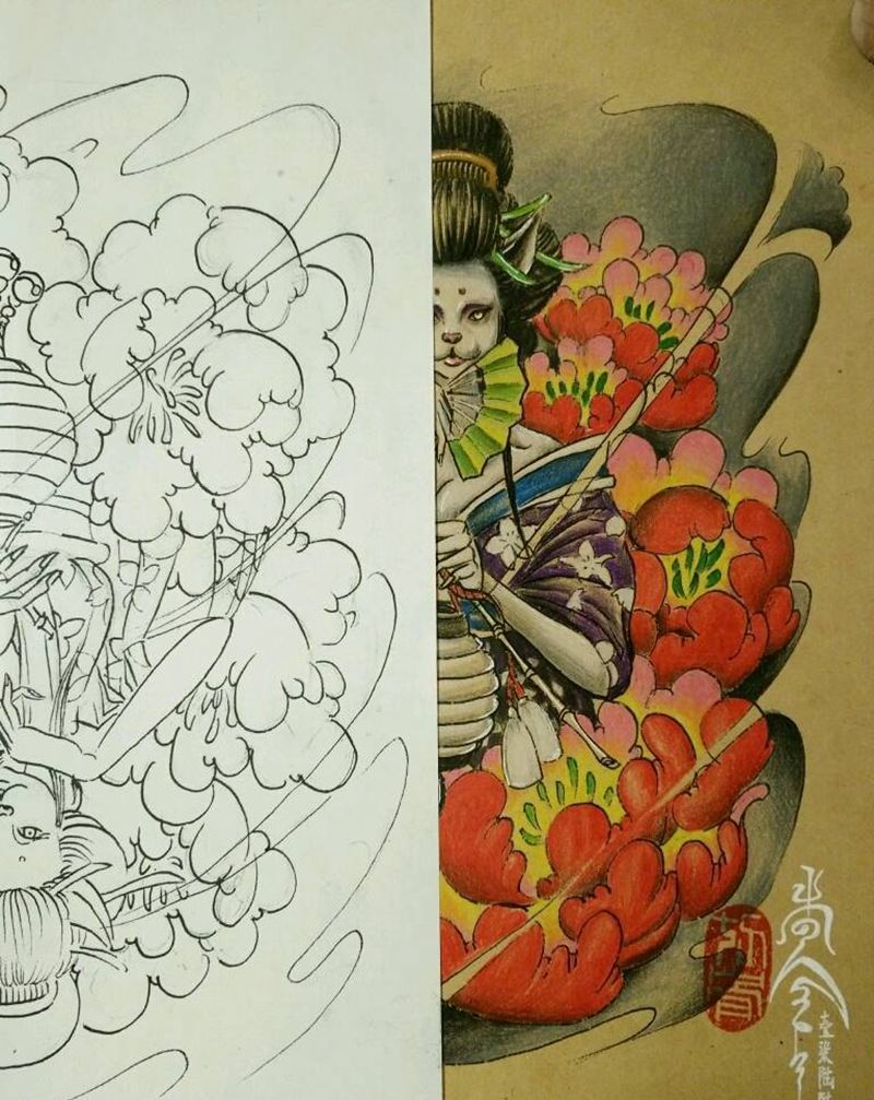 当前位置: 首页 >山东省潍坊市纹身店-澈古刺青纹身图案>猫艺妓(原创手稿)纹身图片