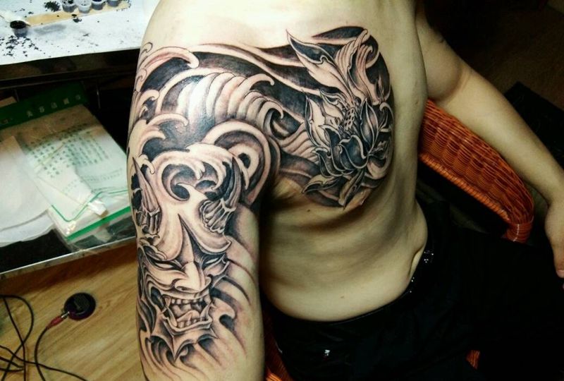 当前位置: 首页 >山东省潍坊市纹身店-澈古刺青纹身图案>般若莲花半甲纹身图片