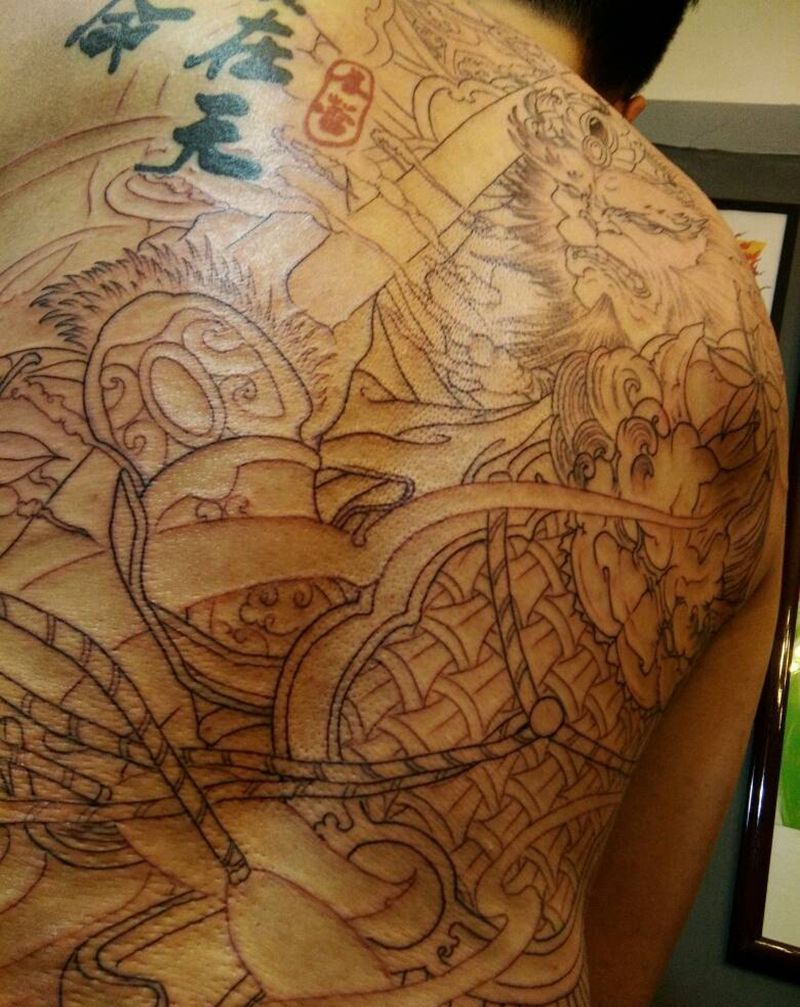 当前位置: 首页 >山东省潍坊市纹身店-澈古刺青纹身图案>满背割线纹身图片