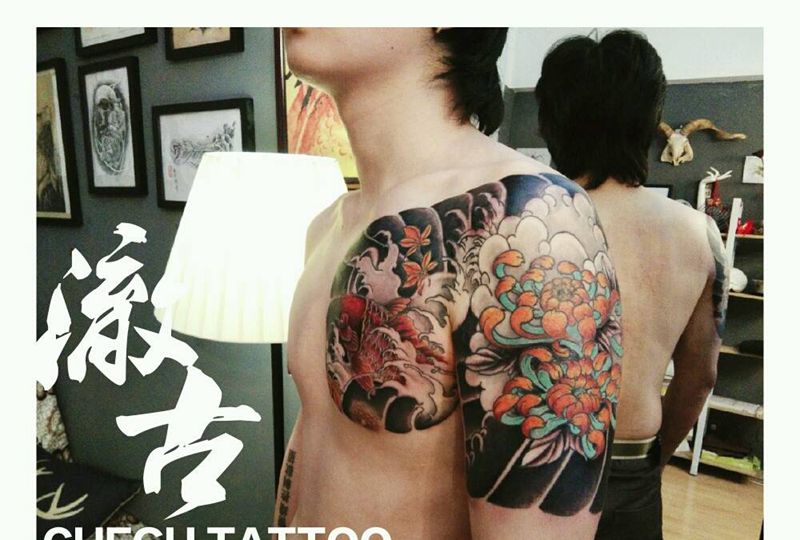 当前位置: 首页 >山东省潍坊市纹身店-澈古刺青纹身图案>原创日式半甲纹身图片