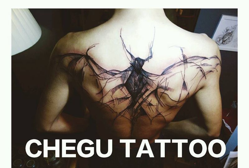 当前位置: 首页 >山东省潍坊市纹身店-澈古刺青纹身图案>线条蝙蝠纹身图片