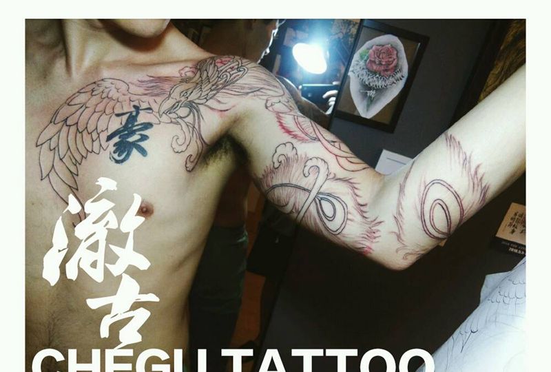 当前位置: 首页 >山东省潍坊市纹身店-澈古刺青纹身图案>原创凤凰 无转印 纯手绘纹身图片