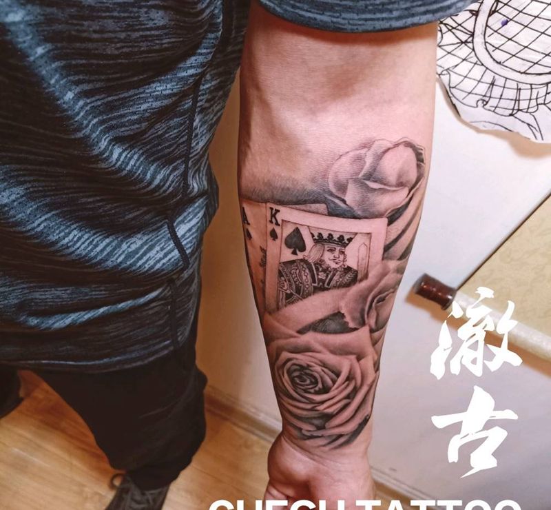 当前位置: 首页 >山东省潍坊市纹身店-澈古刺青纹身图案>扑克牌纹身图片_手臂欧美写实纹身图案