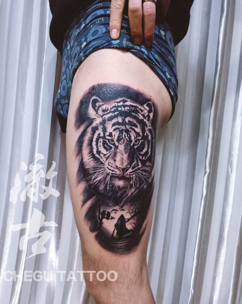• T网红王老大花腿龙纹身图片_腿部新传统纹身图案