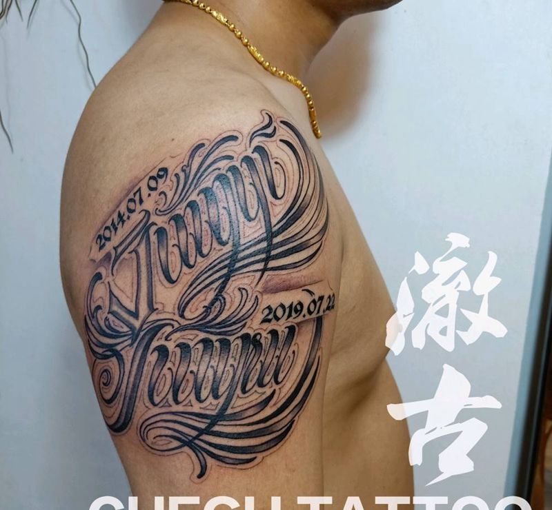 当前位置: 首页 >山东省潍坊市纹身店-澈古刺青纹身图案>花体英文纹身图片_手臂花体字原创纹身图案