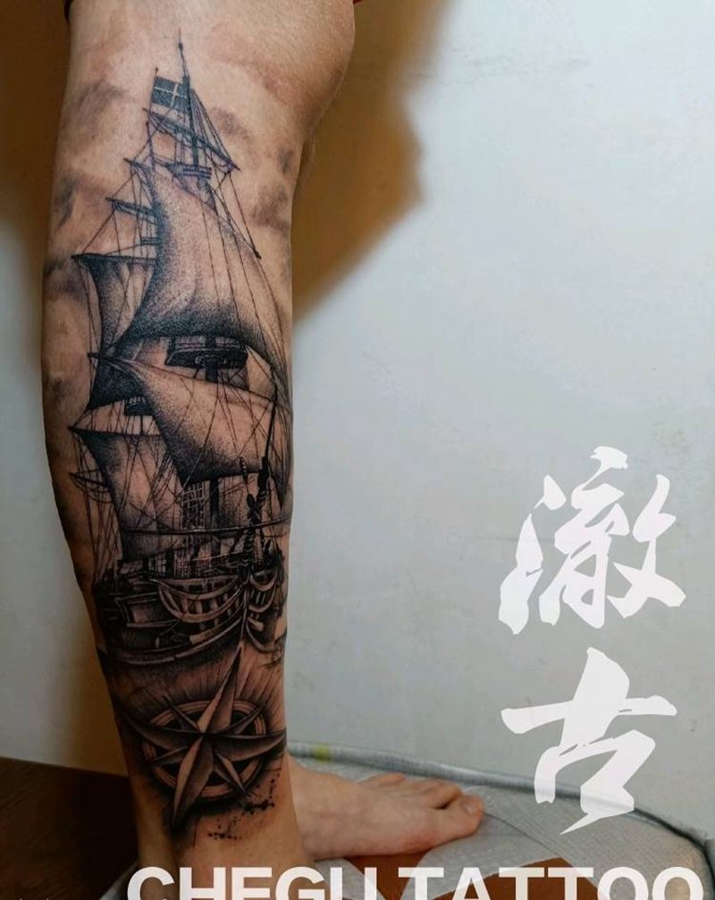 当前位置: 首页 >山东省潍坊市纹身店-澈古刺青纹身图案>帆船纹身图片_腿部欧美写实纹身图案