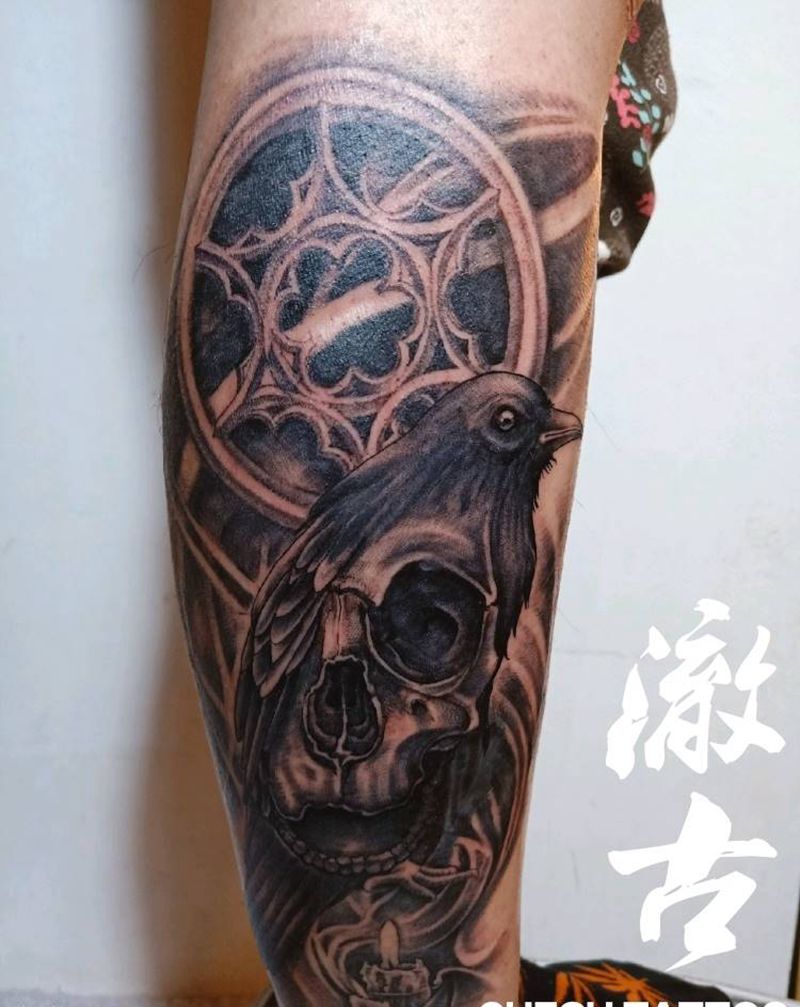 遮盖纹身图片_腿部欧美写实纹身图案