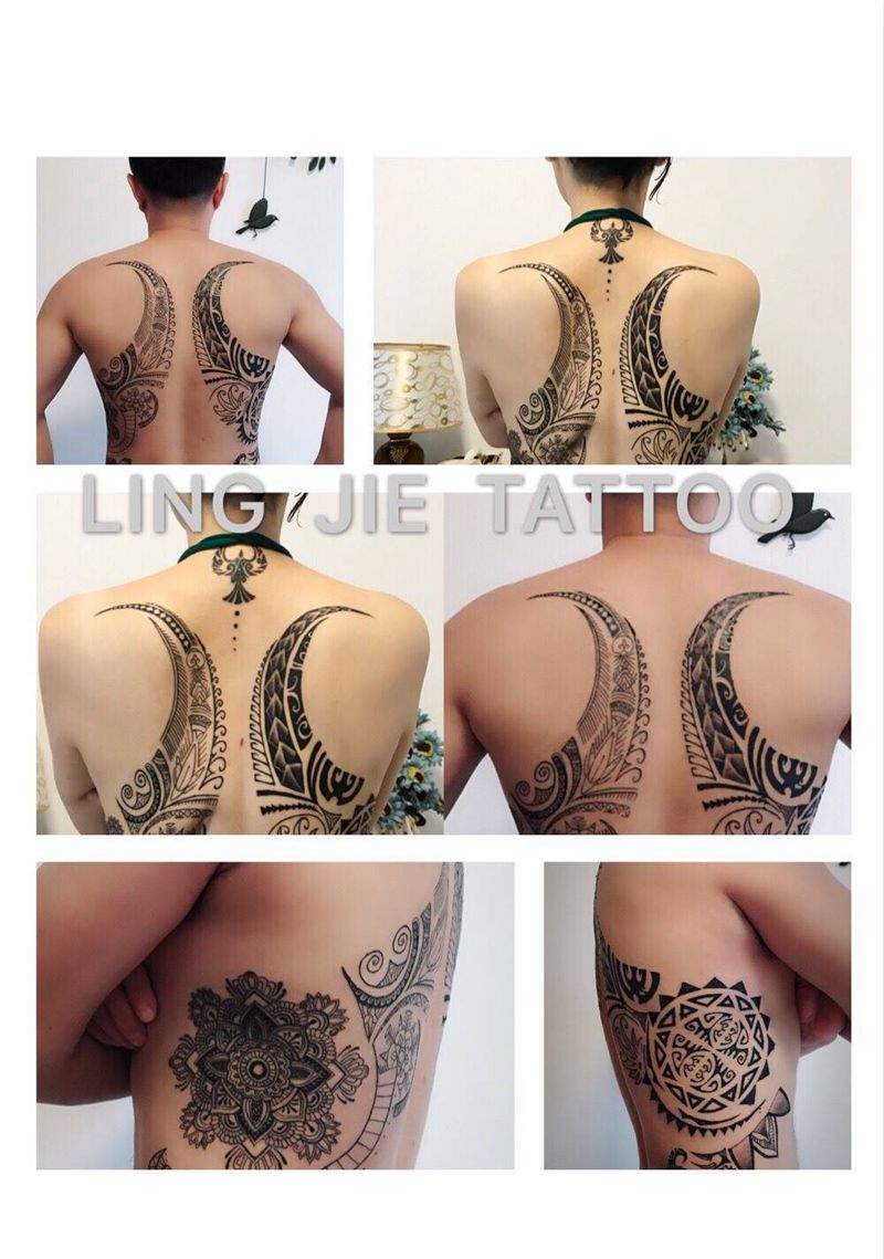 黑灰满背纹身图案