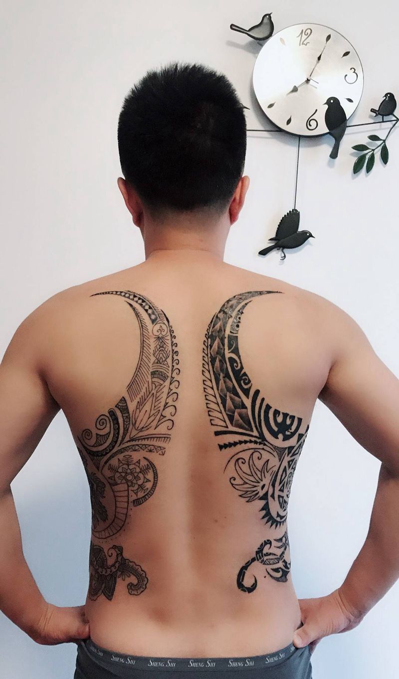 • 黑灰满背纹身图案