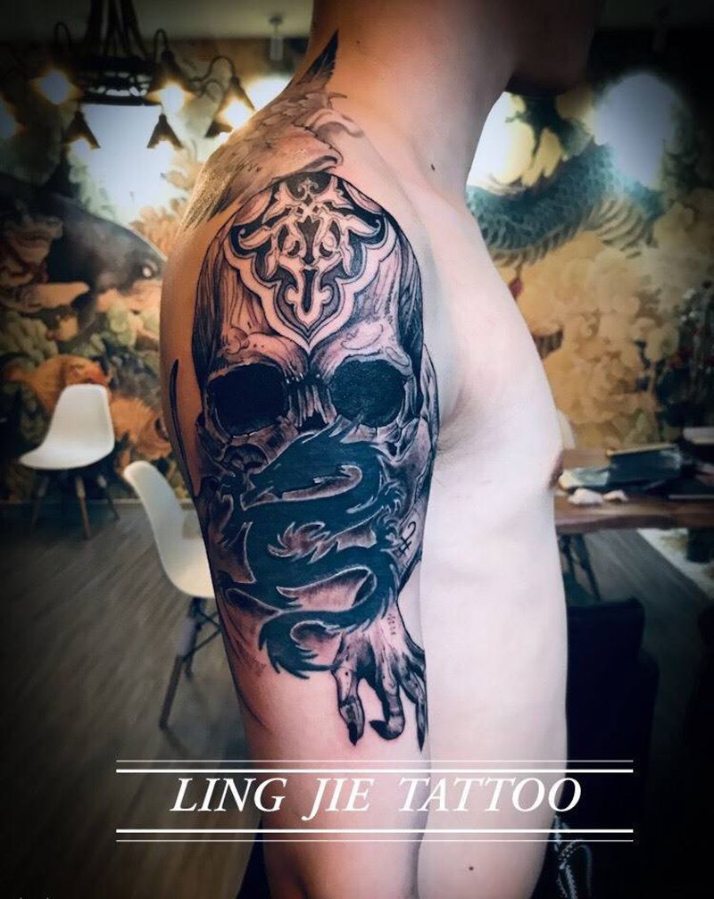 当前位置: 首页 >山东省潍坊市纹身店-靈界刺青纹身图案>骷髅添加纹身图片