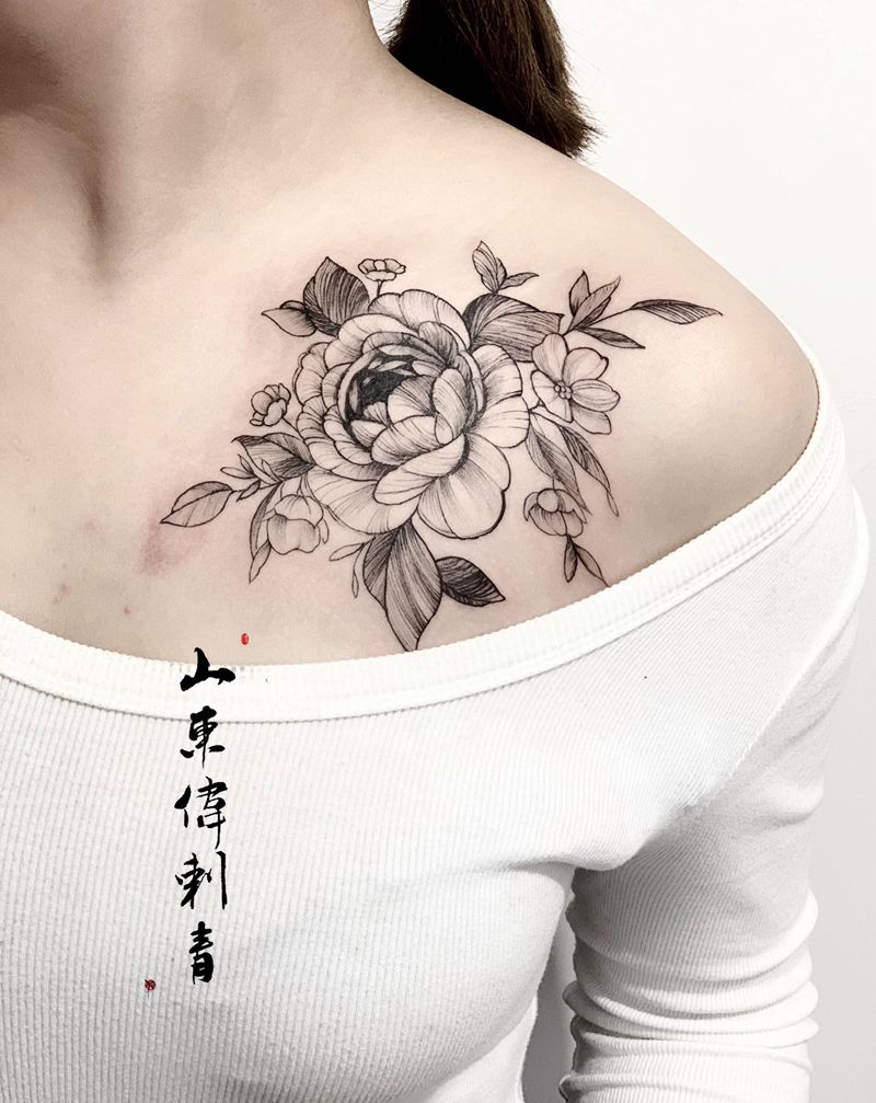 • 女性大花胸纹身_43张霸气漂亮的女性大花胸纹身图案作品