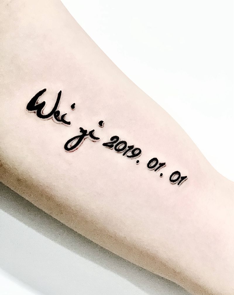 • T家庭图,一家四口生日纪念!纹身图片_手臂纹身图案