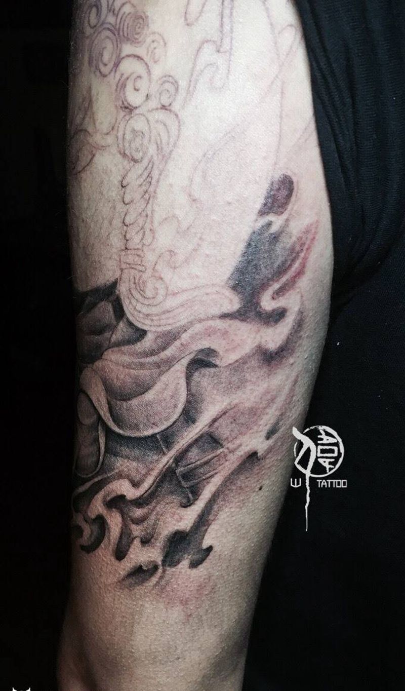 黑灰满背纹身图案