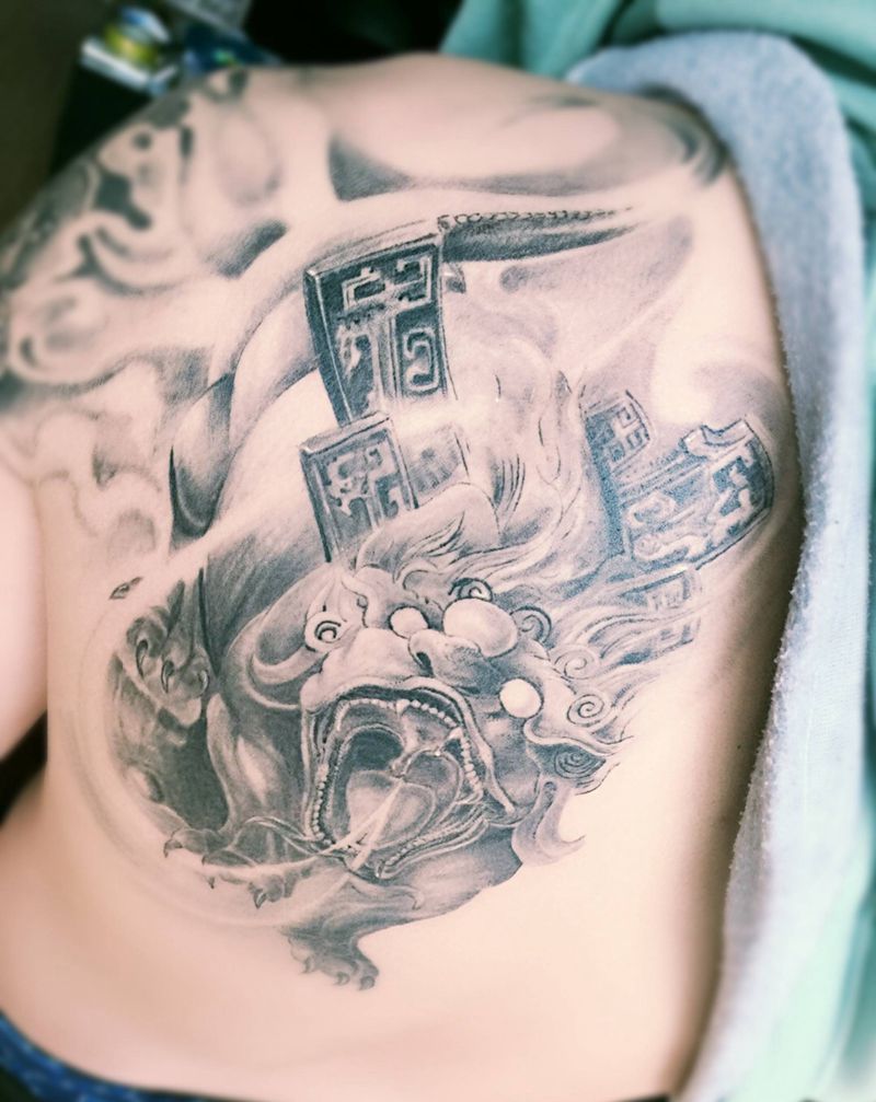 • 黑灰满背纹身图案