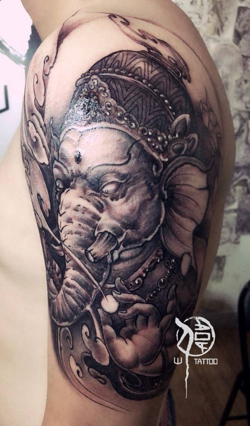当前位置: 首页 >山东省潍坊市纹身店-山东伟刺青纹身图案>象神………纹身图片