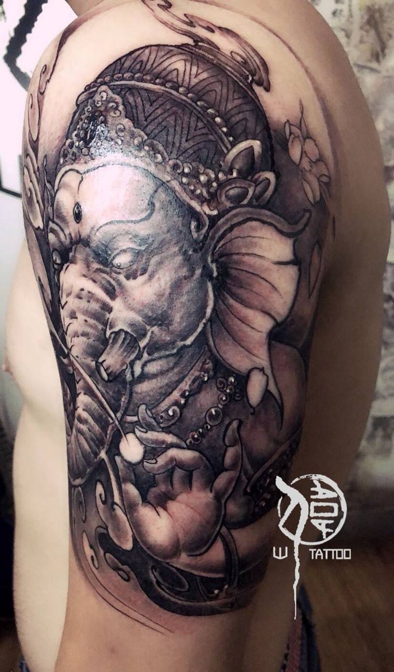 当前位置: 首页 >山东省潍坊市纹身店-山东伟刺青纹身图案>象神………纹身图片