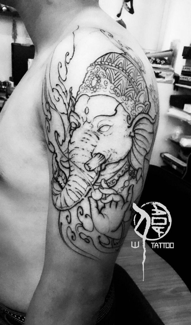 当前位置: 首页 >山东省潍坊市纹身店-山东伟刺青纹身图案>象神………纹身图片