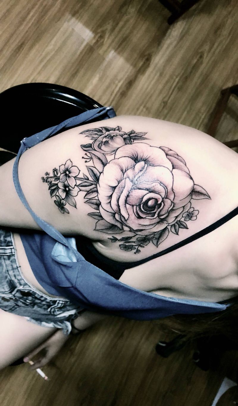 • 女性大花胸纹身_43张霸气漂亮的女性大花胸纹身图案作品