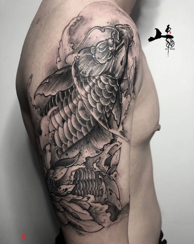 招财鲤鱼纹身图片_手臂新传统纹身图案
