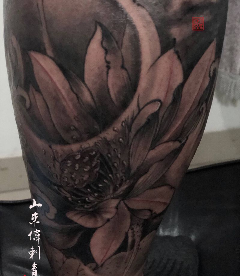 一组15张莲花纹身手