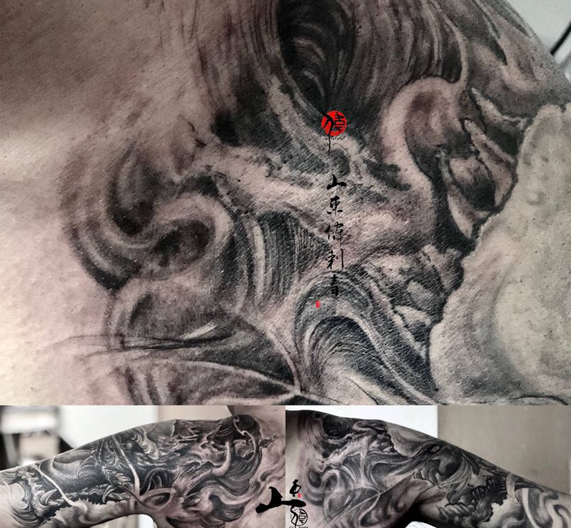 黑灰满背纹身图案