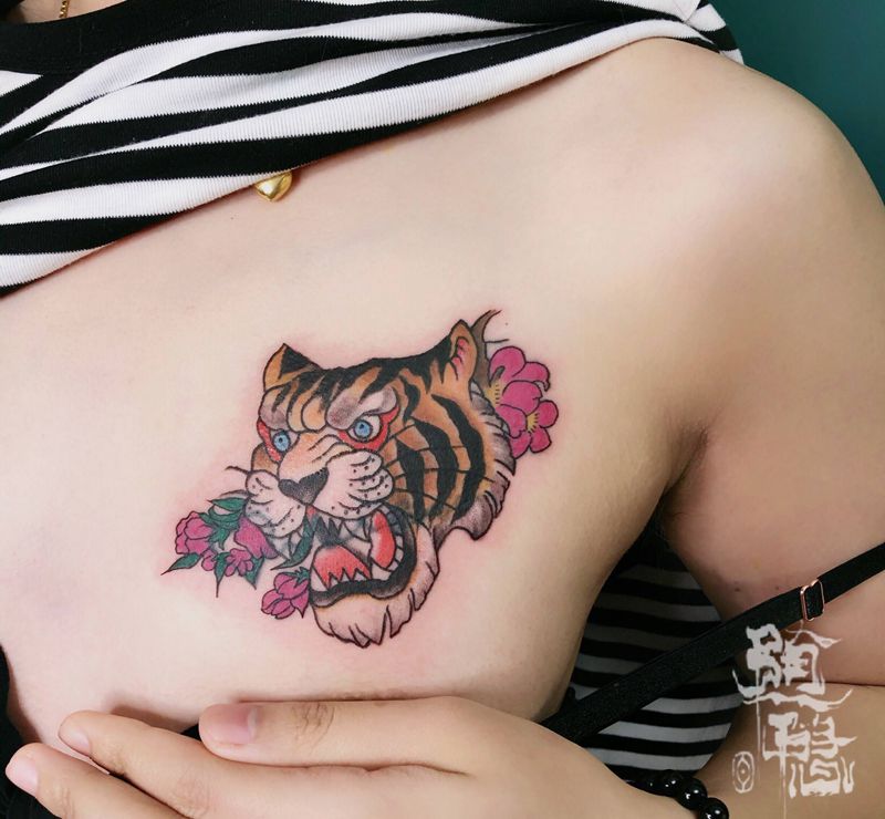 • 女性大花胸纹身_43张霸气漂亮的女性大花胸纹身图案作品