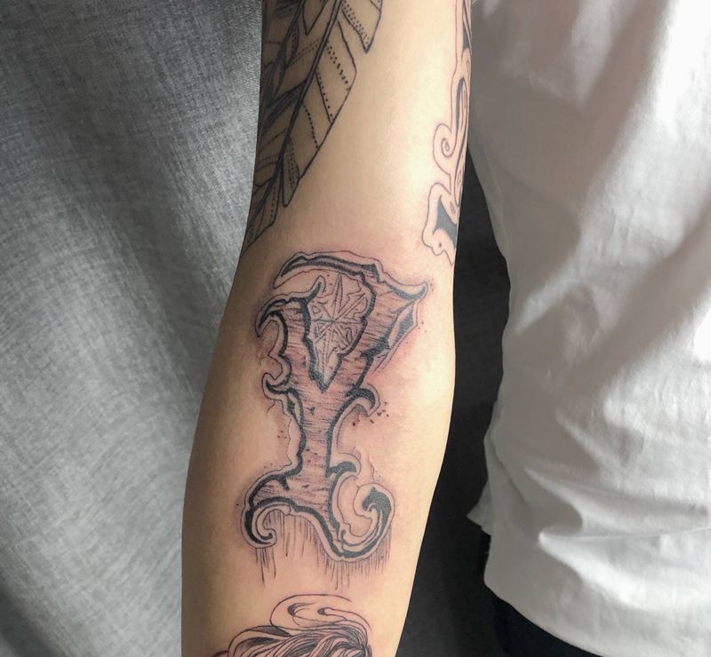 当前位置: 首页 >山东省潍坊市纹身店-随隐刺青纹身图案>Y纹身图片_手臂花体字纹身图案