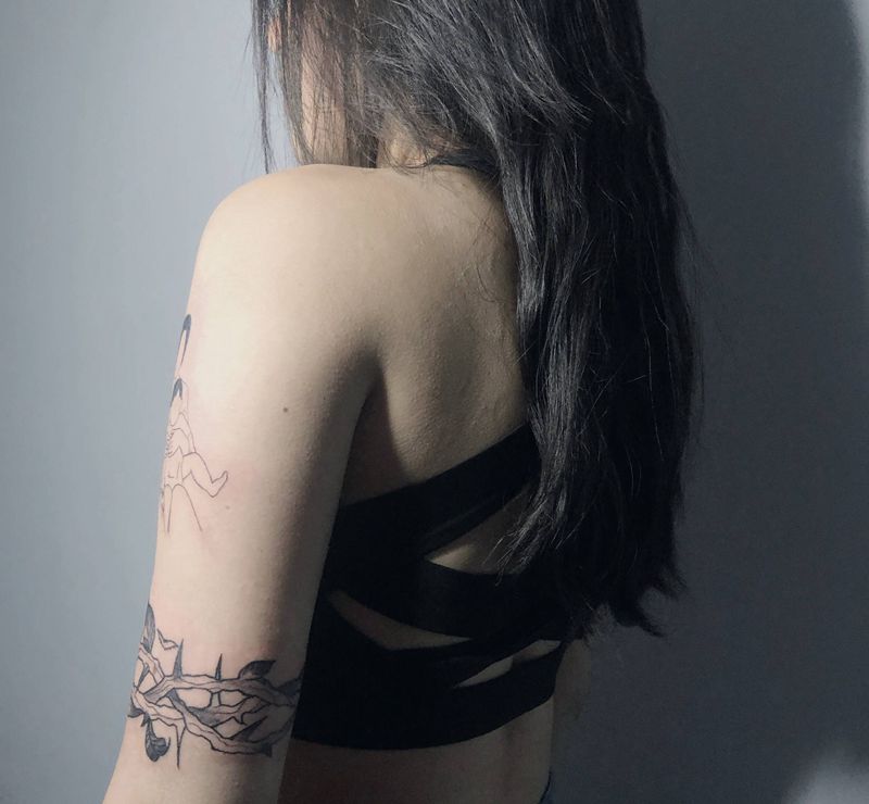 当前位置: 首页 >山东省潍坊市纹身店-随隐刺青纹身图案>荆棘臂环纹身图片_手臂荆棘纹身图案