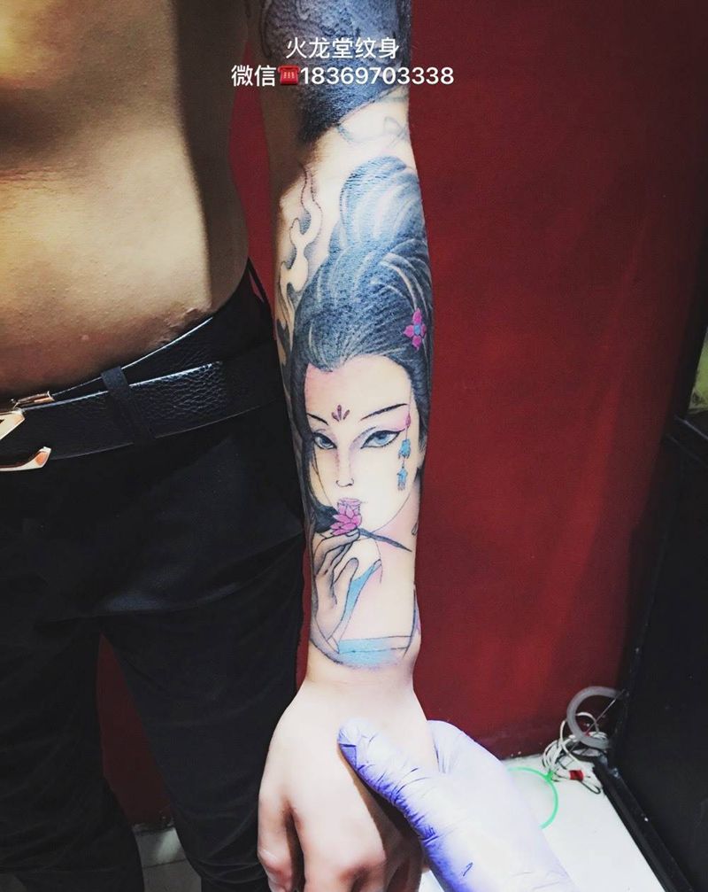 当前位置: 首页 >山东省济宁市纹身店-火龙堂纹身纹身图案>小臂艺妓纹身图片