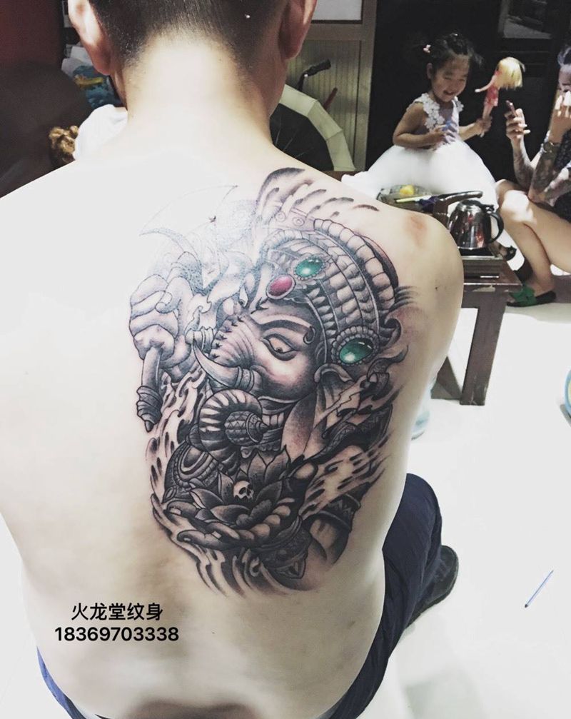 当前位置: 首页 >山东省济宁市纹身店-火龙堂纹身纹身图案>象神,麻药后效果纹身图片