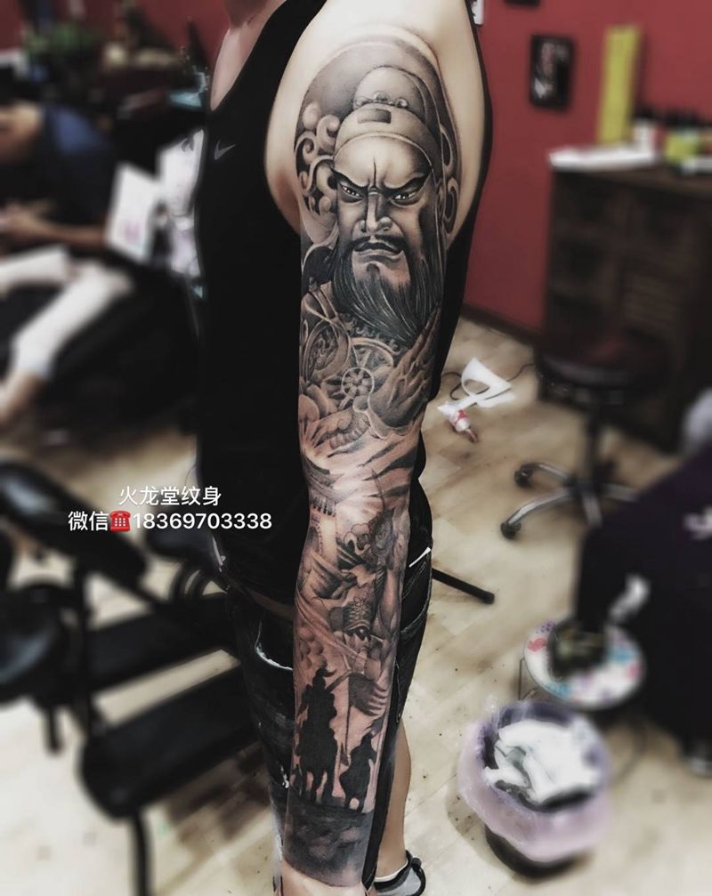 当前位置: 首页 >山东省济宁市纹身店-火龙堂纹身纹身图案>花臂纹身图片_成品手臂传统人物纹身图案