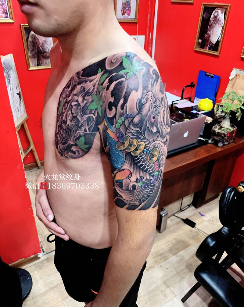 半甲鱼和般若纹身图片_手臂胸部老传统新传统纹身图案