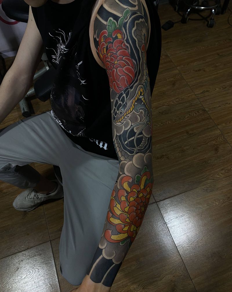 当前位置: 首页 >山东省济宁市纹身店-济宁青龙堂纹身纹身图案>花臂蛇纹身图片_肩部手臂老传统新传统纹身图案