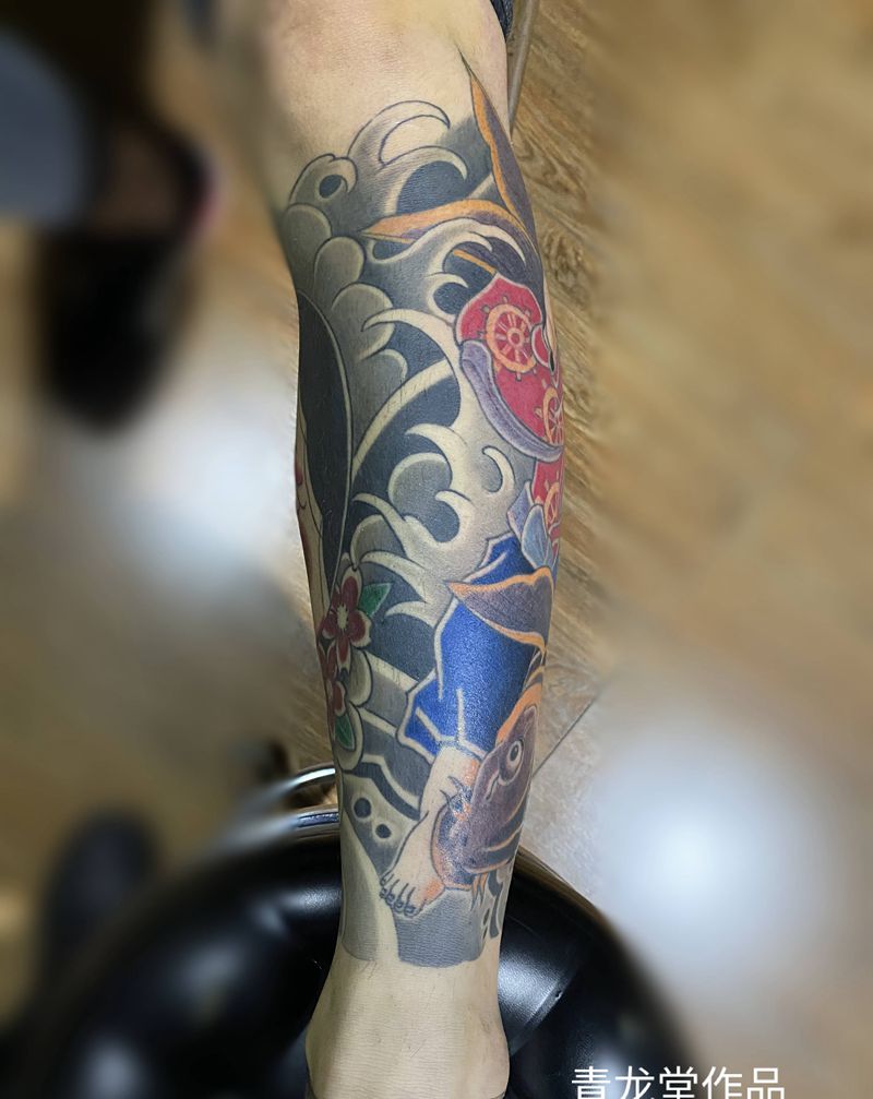 • T网红王老大花腿龙纹身图片_腿部新传统纹身图案