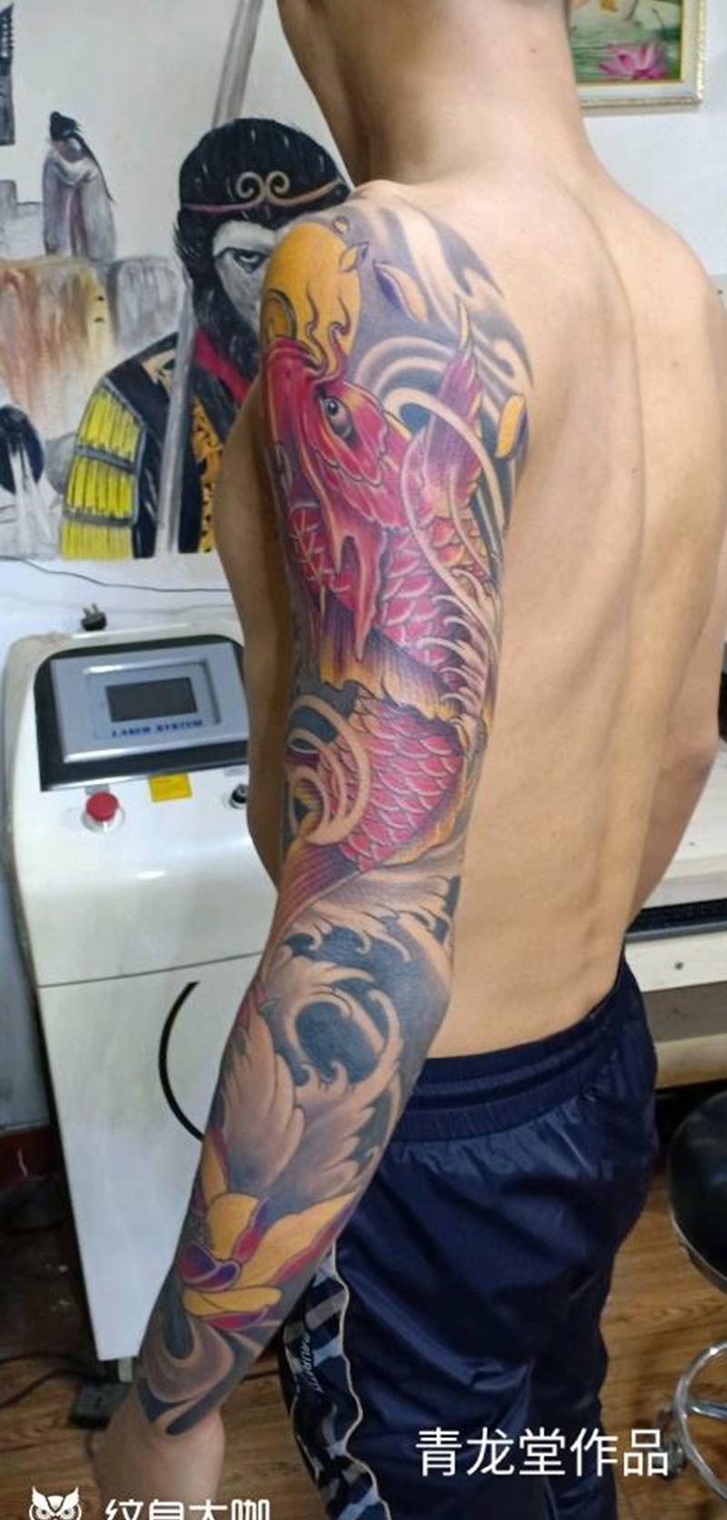 当前位置: 首页 >山东省济宁市纹身店-济宁青龙堂纹身纹身图案>花臂纹身图片_手臂肩部老传统新传统纹身图案