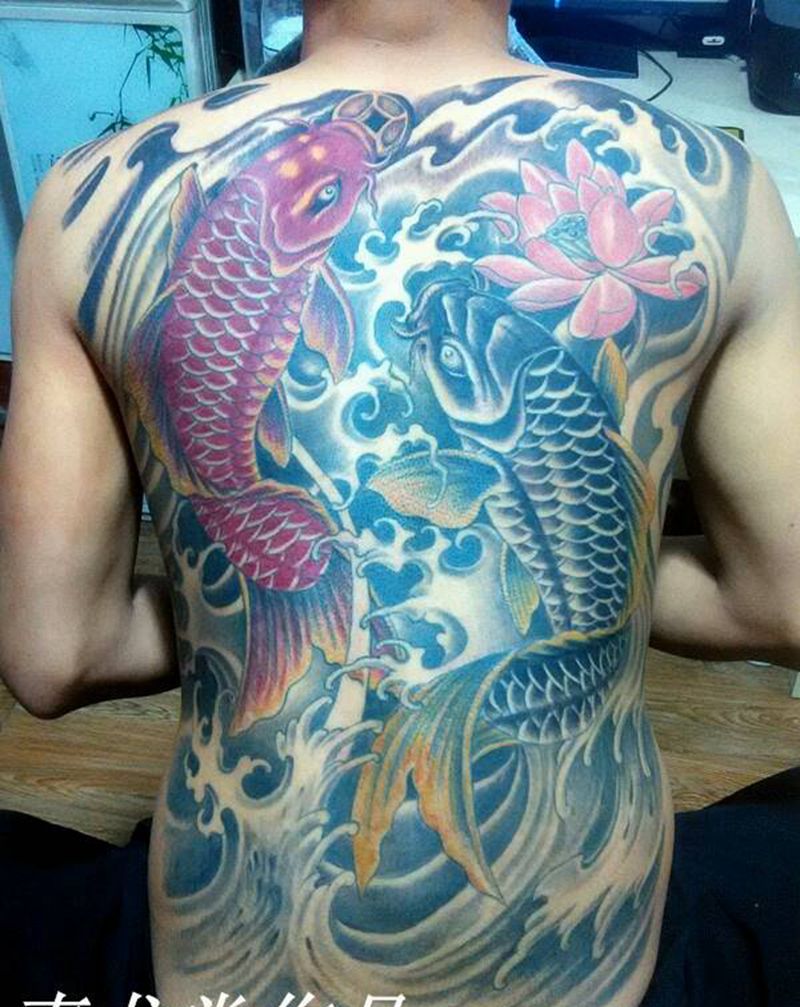当前位置: 首页 >山东省济宁市纹身店-济宁青龙堂纹身纹身图案>后背双鲤图纹身图片