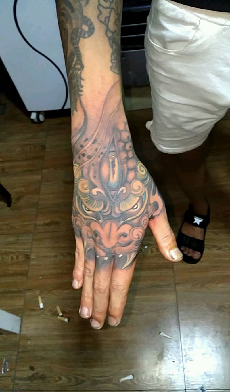 当前位置: 首页 >山东省济宁市纹身店-济宁青龙堂纹身纹身图案>手面唐狮纹身图片
