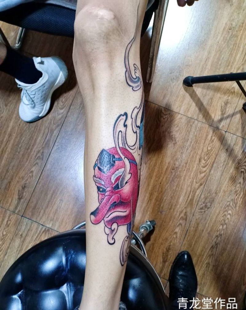 当前位置: 首页 >山东省济宁市纹身店-济宁青龙堂纹身纹身图案>般若纹身图片_腿部脚部老传统水彩纹身图案