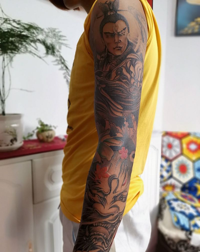 当前位置: 首页 >山东省潍坊市纹身店-刺青部落纹身图案>二郎神花臂纹身图片_手臂新传统般若纹身图案