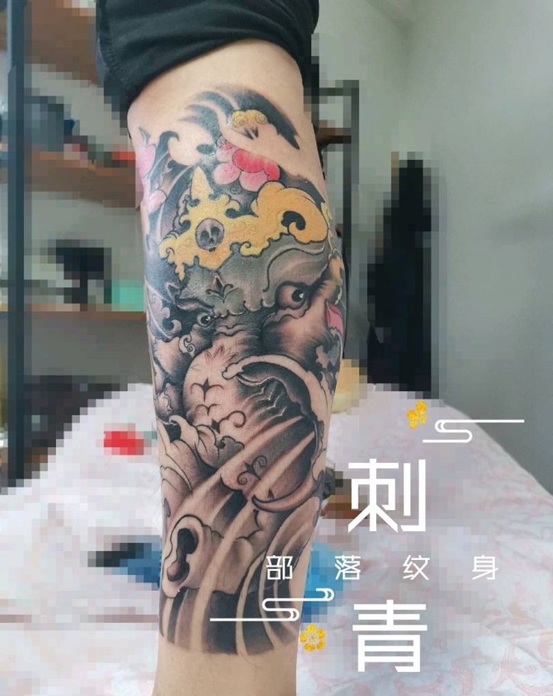 当前位置: 首页 >山东省潍坊市纹身店-刺青部落纹身图案>象神纹身图片_腿部新传统象神纹身图案