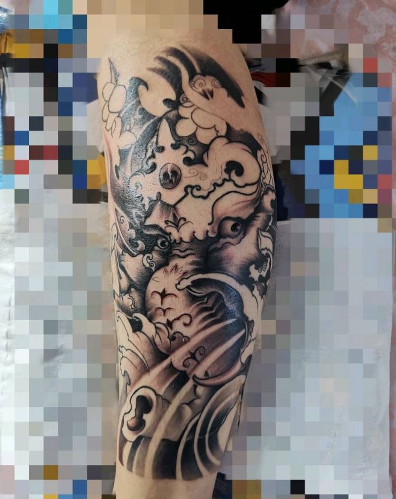 当前位置: 首页 >山东省潍坊市纹身店-刺青部落纹身图案>象神纹身图片_腿部新传统象神纹身图案