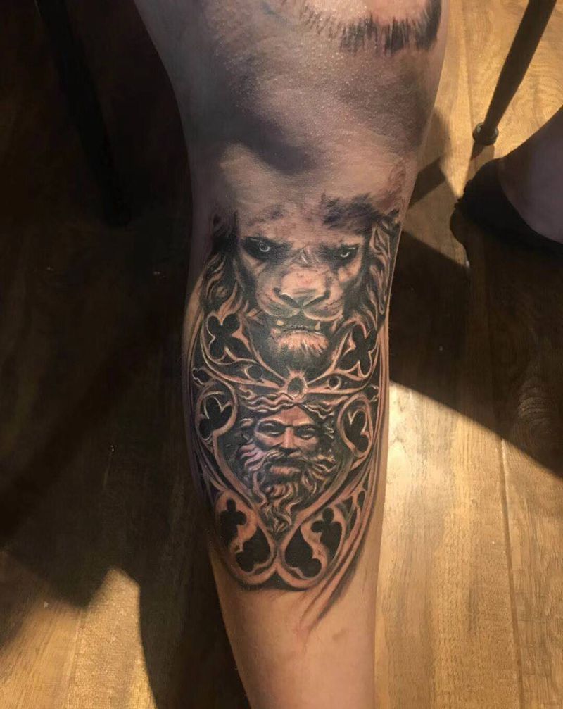 • T网红王老大花腿龙纹身图片_腿部新传统纹身图案