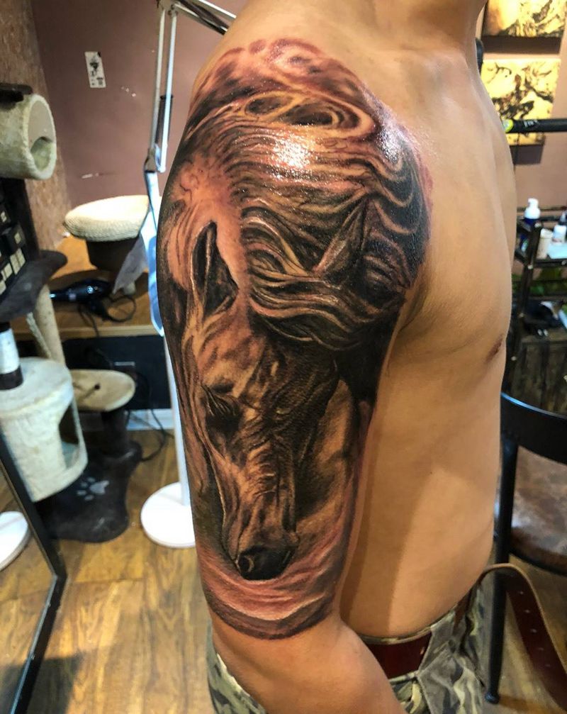 当前位置: 首页 >山东省济宁市纹身店-湛刺青纹身图案>以梦为马纹身图片