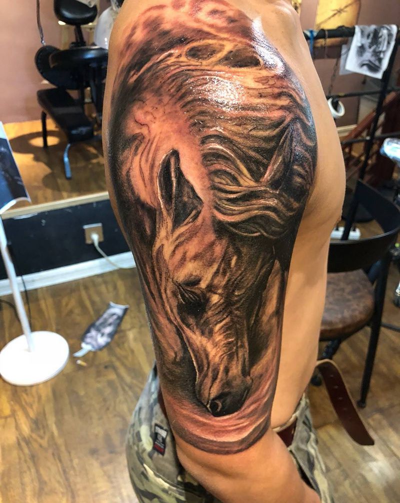 当前位置: 首页 >山东省济宁市纹身店-湛刺青纹身图案>以梦为马纹身图片