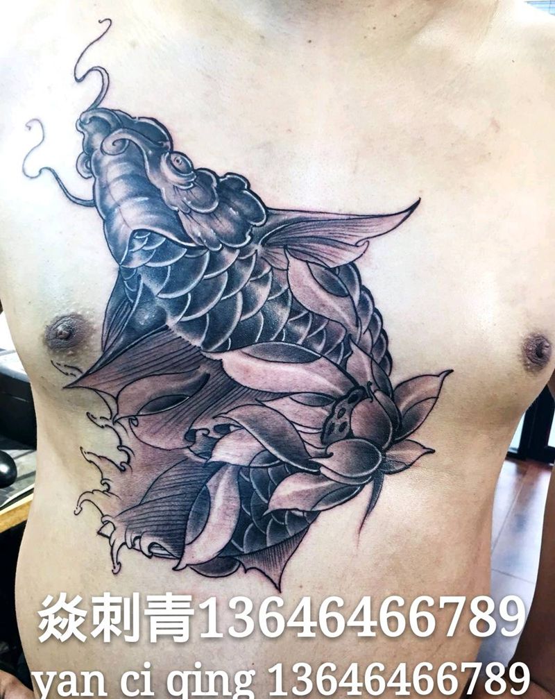 当前位置: 首页 >山东省潍坊市纹身店-焱刺青纹身工作室纹身图案>锦鲤纹身图片_胸部新传统纹身图案